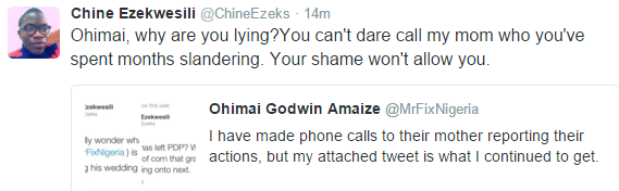 Obi Ezekwesili’s Son, Chine Continues to Slam Ohimai Amaize