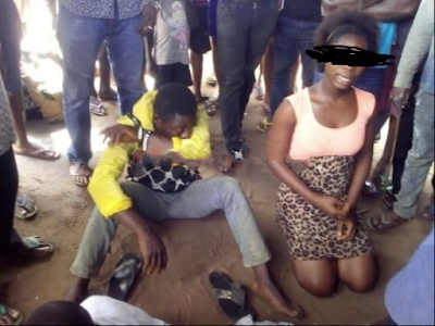 The lady kneeling and telling her story to a mob was raped by a gang of three men. She said she came from her village to visit her boyfriend when the boys broke into the room when the man was not around, saying they were police men who came to arrest her boyfriend.