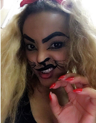 Hahahahahaha….Even with her scary kitty face, the beautiful model and actress still looks pretty in her Halloween costume….