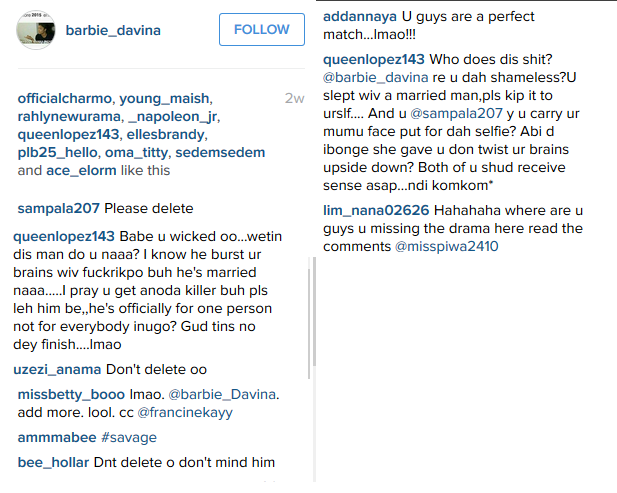 So a lady barbie-davina on instagram posted photos of her and her supposed boo, (a married man )and he has been begging her to take down the photos for 2 weeks now,she has not responded lol..She keeps posting more,even posted a pic with his daughter …