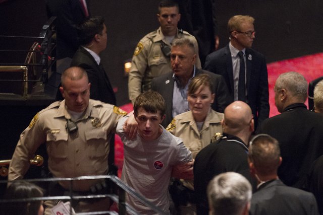 About 1,500 people attended the Las Vegas rally, which was held in the Mystere Theater inside the casino. Attendees had to pass through metal detectors manned by Secret Service, police and casino security officials.