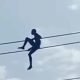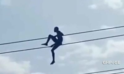 In a video trending online, a young man reported to be a thief climbed a power line to avoid being beaten after area boys gave them...