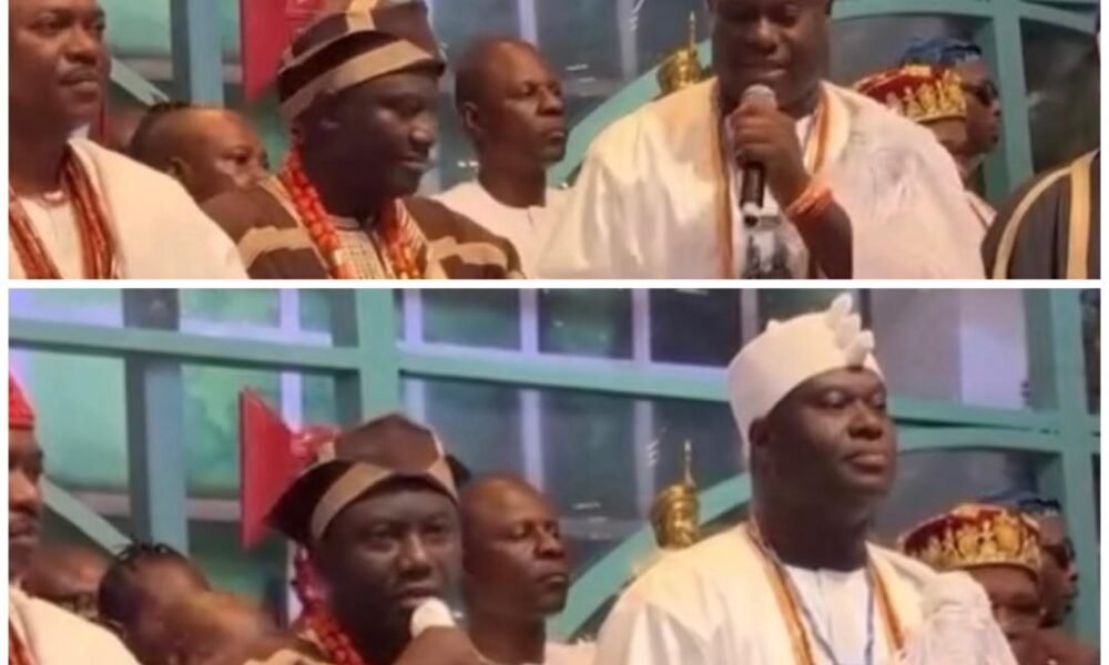 An interaction between the Ooni of Ife, Oba Enitan Ogunwusi, and the Alaafin of Oyo, Oba Abimbola Owoade,at the 90th birthday ceremony of billionaire businessman, Sir...
